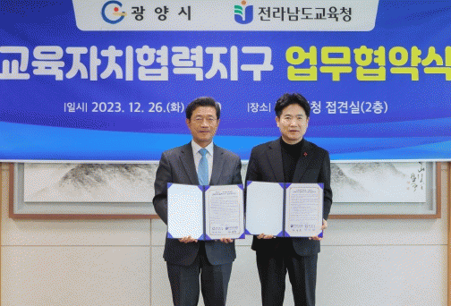 [ÅåÅå´º½º]±¤¾ç½Ã´Â Àü¶ó³²µµ±³À°Ã»°ú 26ÀÏ ½Ãû Á¢°ß½Ç¿¡¼ Áö¼Ó°¡´ÉÇÑ ±³À°°øµ¿Ã¼ Á¶¼ºÀ» À§ÇÑ ¡®±³À°ÀÚÄ¡Çù·ÂÁö±¸ ¾÷¹«Çù¾à¡¯À» ü°áÇß´Ù.