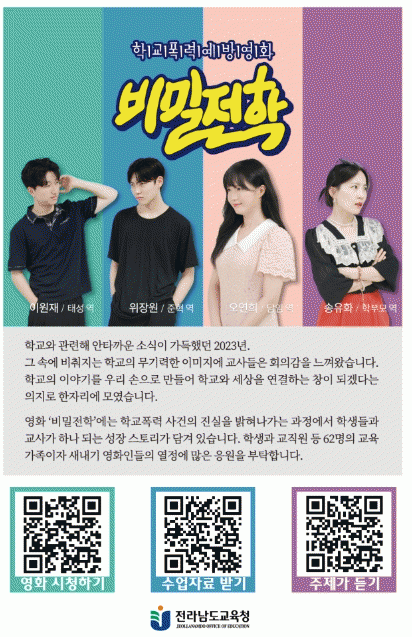 [ÅåÅå´º½º]Àü¶ó³²µµ±³À°Ã»ÀÌ Çб³Æø·Â¿¹¹æÀ» ÁÖÁ¦·Î ¸¸µç ¿µÈ 'ºñ¹ÐÀüÇÐ'ÀÌ Áö³ 14Àϰú 18ÀÏ È£Æò ¼Ó¿¡ ½Ã»çȸ¸¦ ¸¶Ä¡°í ´©±¸³ª º¼ ¼ö ÀÖµµ·Ï ¼ö¾÷ÀÚ·á¿Í ÇÔ²² °ø°³µÈ´Ù.