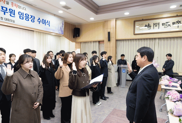 [ÅåÅå´º½º]±¤Áֽñ³À°Ã»ÀÌ 27ÀÏ º»Ã» ´ëȸÀǽǿ¡¼ 4, 5±Þ ½ÂÁøÀÚ 15¸í°ú °øÁ÷¿¡ ù¹ßÀ» ³»µó´Â ½Å±Ô °ø¹«¿ø 41¸í¿¡°Ô ÀÓ¿ëÀåÀ» ¼ö¿©Çß´Ù.
