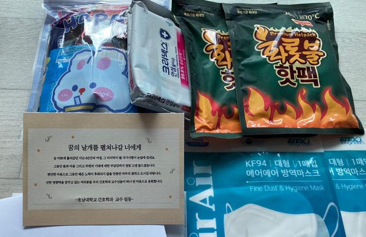 °£È£Çаú 4Çгâ Çлýµé°ú °£È£Çаú ±³¼öÁøÀÌ Âü¼®ÇÑ °¡¿îµ¥ °ÇÇаü °Àǽǿ¡¼ ÁøÇàµÈ À̹ø Çà»ç´Â, 1¿ù 19ÀÏ ½Ç½ÃµÇ´Â ±¹°¡°í½Ã¸¦ ¾ÕµÎ°í ÀÖ´Â 4Çгâ Çлýµé¿¡°Ô ÇÕ°ÝÀ» ±â¿øÇÏ´Â ÀÀ¿ø ¸Þ½ÃÁö¿Í ÀÀ¿ø ¹°Ç°À» Àü´ÞÇÏ°í ±â¿îÀ» ºÏ µ¸¾Ò´Ù. Çà»ç¿¡ Âü¼®ÇÏÁö ¸øÇÑ Çлýµé¿¡°Ô´Â ¿ìÆíÀ¸·Î ÀÀ¿øÅ°Æ®¿Í ÀÀ¿ø¸Þ½ÃÁö¸¦ Àü´ÞÇÏ¿´´Ù.