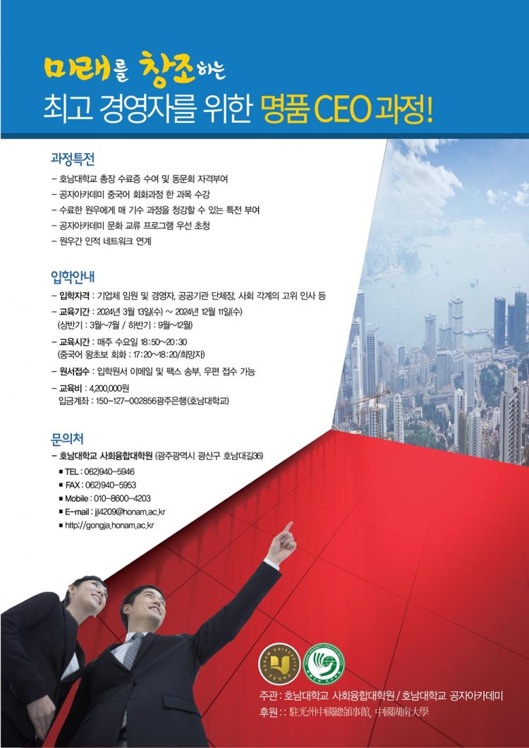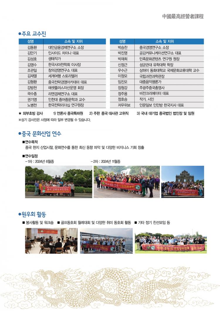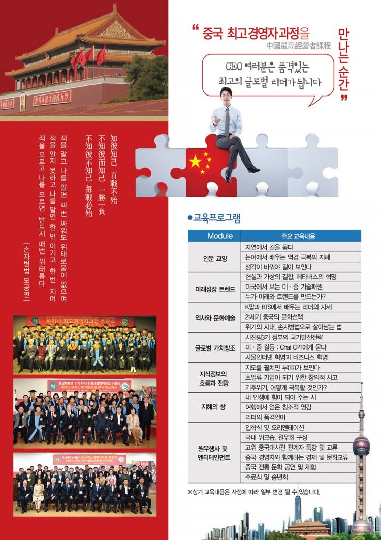±¹³» ÃÖ°íÀÇ Áß±¹ Àü¹®°¡ ¾ç¼º°úÁ¤À¸·Î ÀÚ¸®¸Å±èÇÑ È£³²´ëÇб³ Áß±¹ ÃÖ°í°æ¿µÀÚ°úÁ¤(CHAMP)Àº Çѱ¹°ú Áß±¹ÀÇ ¼®Çаú Àü¹®°¡µéÀÇ Æ¯º°°ÁÂ¿Í Áß±¹ ¿¬¼ö µîÀ¸·Î ±¸¼ºµÇ¸ç, ¿À´Â 3¿ù 13ÀÏ °³°ÇØ 12¿ù 11ÀϱîÁö ÁøÇàµÈ´Ù.