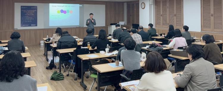 ±³¼öÇнÀ°³¹ß¿ø°ú °øµ¿ ÁÖ°üÀ¸·Î ÁøÇàµÈ À̹ø ±³¼ö¹ý ¼¼¹Ì³ª´Â È£³²´ëÇб³ ±³¼ö 20¿© ¸í°ú ¿¬±¸¿øµéÀÌ Âü¿©ÇÑ °¡¿îµ¥ ±è³²±â ±³¼ö(Àü³²´ëÇб³)¸¦ °»ç·Î ÃÊû, ¡®µðÀÚÀÎ ¾ÅÅ·(Design Thinking)À» Ȱ¿ëÇÑ ÆÀ±â¹Ý âÀÇ ÇÁ·ÎÁ§Æ®(PBL+TBL) ¼ö¾÷ ½ÇÀü ±³¼ö¹ý¡¯À» ÁÖÁ¦·Î ÁøÇàµÆ´Ù.