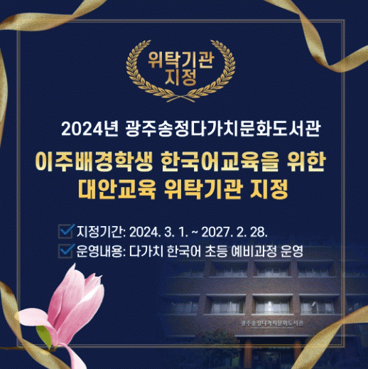 [ÅåÅå´º½º]±¤Áֽñ³À°Ã»Àº ±¤ÁÖ¼ÛÁ¤´Ù°¡Ä¡¹®Èµµ¼°üÀ» ÀÌÁÖ¹è°æÇлýµéÀ» ´ë»óÀ¸·Î Çѱ¹¾î±³À°À» ½Ç½ÃÇÏ´Â ´ë¾È±³À° À§Å¹±â°üÀ¸·Î ÁöÁ¤Çß´Ù.