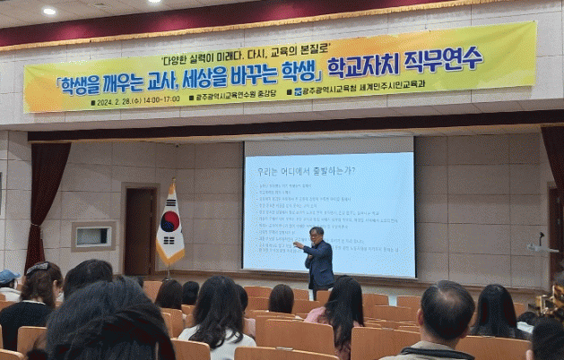[ÅåÅå´º½º]±¤Áֽñ³À°Ã»ÀÌ Áö³ 28ÀÏ ±¤ÁÖ±³À°¿¬¼ö¿ø Áß°´ç¿¡¼ ÃÊ¡¤Áß¡¤°í ±³¿ø ¹× ±³À°Àü¹®Á÷¿ø 130¿© ¸íÀÌ Âü¼®ÇÑ °¡¿îµ¥ ¡®ÇлýÀ» ±ú¿ì´Â ±³»ç, ¼¼»óÀ» ¹Ù²Ù´Â Çлý¡¯À» ÁÖÁ¦·Î Çб³ÀÚÄ¡ ÇöÀå ¸ÂÃãÇü ¿¬¼ö¸¦ ½Ç½ÃÇß´Ù.