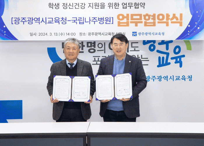 [ÅåÅå´º½º]±¤Áֽñ³À°Ã»ÀÌ 13ÀÏ ±¹¸³³ªÁÖº´¿ø°ú Á¤½Å°Ç° À§±â ÇлýÀÇ °Ç°ÇÑ ¼ºÀåÀ» µ½´Â ¾÷¹«Çù¾àÀ» ü°áÇß´Ù.