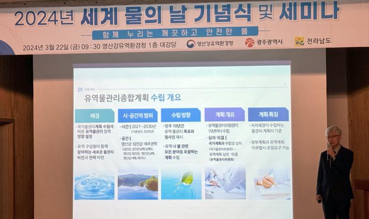 [ÅåÅå´º½º]¿µ»ê°¡¤¼¶Áø°À¯¿ª ¹°°ü¸®À§¿øÈ¸ À§¿øÀåÀ» ¸Ã°í Àִ ȣ³²´ëÇб³ ±è¹Îȯ ±³¼ö(Åä¸ñȯ°æ°øÇаú)´Â 3¿ù 22ÀÏ ¿µ»ê°À¯¿ªÈ¯°æÃ»ÀÌ ÁÖÃÖÇÏ´Â ¡®¼¼°è ¹°ÀÇ ³¯¡¯ ±â³ä½Ä¿¡ Âü¼®ÇÏ¿© Ãà»ç¿Í ÁÖÁ¦ ¹ßÇ¥¸¦ ÇÏ¿´´Ù.