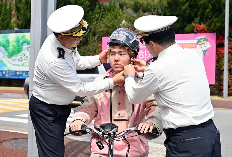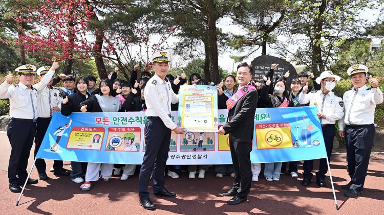 ƯÈ÷ ±¤»ê°æÂû¼ ¹®¼ºÇÊ ±³Åë°úÀå µî 7¸íÀÇ °æÂû°üµéÀº Àüµ¿Å±º¸µå³ª ÀÚÀü°Å ÀÌ¿ë ½Ã ¾ÈÀü¸ð ¹ÌÂø¿ë µî ¾ÈÀü¼öÄ¢ À§¹Ý ÇлýµéÀ» ´ë»óÀ¸·Î ÇÑ °èµµ Ȱµ¿°ú ÇÔ²², ÁغñÇØ ¿Â ¾ÈÀü¸ð¸¦ Á÷Á¢ ¾º¿öÁÖ¸ç ¾ÈÀü ¿îÇàÀ» µ¶·ÁÇß´Ù.