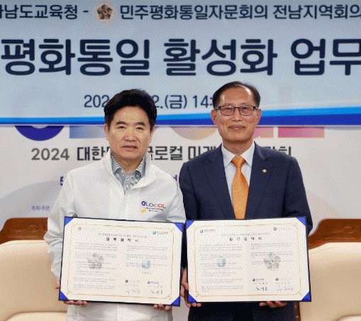 [ÅåÅå´º½º]Àü¶ó³²µµ±³À°Ã»°ú ¹ÎÁÖÆòÈÅëÀÏÀÚ¹®È¸ÀÇ Àü³²Áö¿ªÈ¸ÀÇ´Â 12ÀÏ Àü³²±³À°Ã» ºñÁî´Ï½º½Ç¿¡¼ ¹Ì·¡¼¼´ëÀÇ ÆòÈÅëÀÏ °¨¼ö¼º ÇÔ¾çÀ» À§ÇÑ ¾÷¹« Çù¾àÀ» ü°áÇß´Ù.