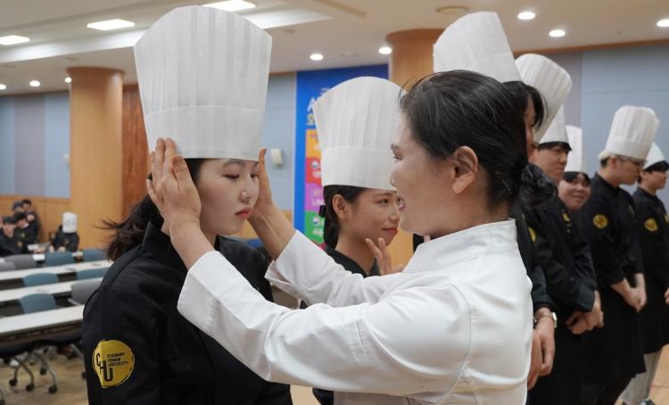 À̾î Áöµµ±³¼ö¿Í ±è¿µÈñ ¸íÀå, ¼±¹èµéÀÌ ½ÅÀÔ»ýµé¿¡°Ô Á¶¸®¸ð(Toque)¸¦ ¾º¿öÁÖ´Â ¿Ü½ÄÁ¶¸®ÀÎ Âø¸ð½Ä, ½ÅÀÔ»ý ´ëÇ¥ ÇѱÝÁø‧±è½Å¿µ ÇлýÀÇ Á¶¸®ÀÎ ¼±¼¹® ³¶µ¶, »çÀü °ø¸ð¸¦ °ÅÃÄ ¼±Á¤µÈ ¡®È£³²´ë Á¶¸®º¹ º£½ºÆ® µå·¹¼¡¯ ¼ö»óÀÚ(À¯½Â¿¬, ÃÖÀÌ»è, À̼¸°)¿¡ ´ëÇÑ ½Ã»ó½Äµµ ÁøÇàµÆ´Ù.
