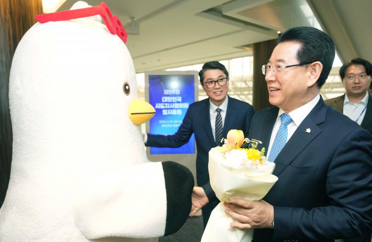 | ±è¿µ·Ï Àü¶ó³²µµÁö»ç°¡ 19ÀÏ ºÎ»êÆÄ¶ó´ÙÀ̽ºÈ£ÅÚ¿¡¼ ¿¸° ¡®Á¦59Â÷ ´ëÇѹα¹½ÃµµÁö»çÇùÀÇȸÃÑȸ¡¯¿¡ Âü¼®, ºÎ»ê ¸¶½ºÄÚÆ®·ÎºÎÅÍ ²ÉÀ» ¼±¹°¹Þ°í ÀÖ´Ù. |