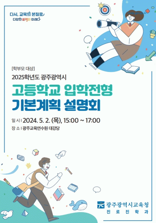 [ÅåÅå´º½º]±¤Áֽñ³À°Ã»Àº ³»´Þ 2ÀÏ ¿ÀÈÄ 3½Ã ±¤ÁÖ±³À°¿¬¼ö¿ø ´ë°´ç¿¡¼ Çкθð ´ë»ó ¡®2025 °íµîÇб³ ÀÔÇÐÀüÇü ±âº»°èȹ ¹× 2028 ´ëÀÔÁ¦µµ °³Æí¾È ¼³¸íȸ¡¯¸¦ °³ÃÖÇÑ´Ù.