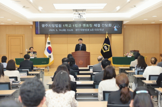 [ÅåÅå´º½º]±¤Áֽñ³À°Ã»ÀÌ Áö³ 14ÀÏ ±¤ÁÖÁö¹æ¹ý¿ø ´ëȸÀǽǿ¡¼ ¡®1Çб³ 1¹ý°ü Áø·Î ¸àÅ丵¡¯ ü°á½ÄÀ» ÁøÇàÇß´Ù.