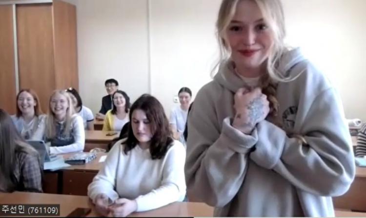 5¿ù 16ÀÏ ½Ç½Ã°£ ¿Â¶óÀÎÀ¸·Î ÁøÇàµÈ ·¯½Ã¾Æ Ä«ÀÜ¿¬¹æ´ëÇб³¿ÍÀÇ °£´ãȸ¿¡¼´Â 'È£³²´ë KF ±Û·Î¹ú e-½ºÄð Çѱ¹¾î±³À° »ç¾÷´Ü(´ÜÀå ±Û·Î¹úÇѱ¹¾î±³À°Çаú À±¿µ ±³¼ö)'ÀÇ ÇöÁö¿µ °»ç(Çѱ¹¾î±³À°¿ø)¿Í Ä«ÀÜ¿¬¹æ´ë ±³¼ö(Çѱ¹¿ª»çÇаú), ±×¸®°í ÇлýµéÀÌ Âü¿©ÇßÀ¸¸ç, º½ Çб⿡ µè°í ÀÖ´Â 'Çѱ¹¾î ¾îÈÖ È°¿ë ¿¬½À(VODÄÜÅÙÃ÷)' ¼ö¾÷¿¡ ´ëÇØ ÁúÀÇ ÀÀ´äÇÏ´Â ½Ã°£À» °¡Á³´Ù.