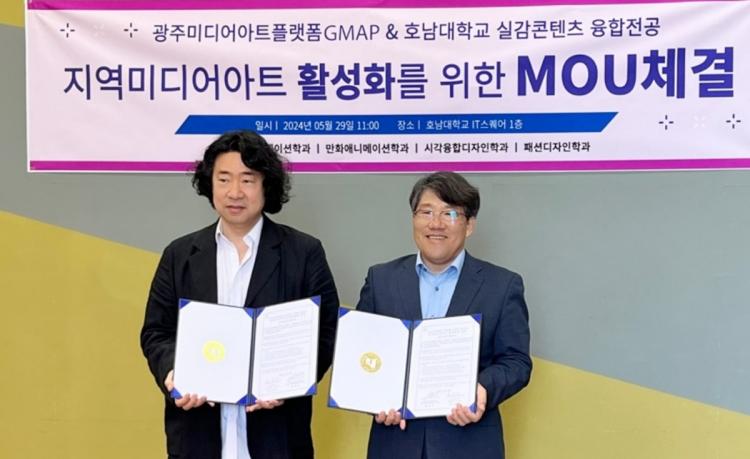 ¶ÇÇÑ ±¤Á̵ֹð¾î¾ÆÆ®Ç÷§Æû À̰æÈ£ ¼¾ÅÍÀåÀº ¡°°³°ü ÀÌ·¡ ù ¹øÂ° MOUü°áÀ» È£³²´ëÇб³ ½Ç°¨ÄÜÅÙÃ÷ À¶ÇÕÀü°ø°ú ÁøÇàÇÏ°Ô µÅ ¸Å¿ì ¶æ±í°í, Áö¿ªÀÇ ¹Ìµð¾î¾ÆÆ® Ȱ¼ºÈ¿Í ÀÎÀç¾ç¼ºÀ» À§ÇØ ³ë·ÂÇϰí Àִ ȣ³²´ëÇб³ ½Ç°¨ÄÜÅÙÃ÷ À¶ÇÕÀü°ø ÇлýµéÀÇ È°¾àÀÌ ¸Å¿ì ±â´ëµÈ´Ù¡±¸ç ¡°ÇϹݱâ ÇлýµéÀÇ ¹Ìµð¾î¾ÆÆ® ¹× ½Ç°¨ÄÜÅÙÃ÷ ÀÛǰ Àü½Ãȸ °³ÃÖ ¹× ¼¼¹Ì³ª µî ±³À°ÇÁ·Î±×·¥ Àû±Ø Áö¿ø°ú Áö¿ª ¹Ìµð¾î¾ÆÆ® Ȱµ¿ Ȱ¼ºÈ¿¡ Èû¾²°Ú´Ù¡±°í ¸»Çß´Ù.