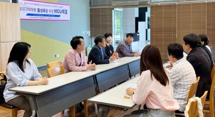 MOU ü°áÀ» ÁøÇàÇÑ ¿ÀÅ¿ø ±³¼ö(½Ã°¢À¶ÇÕµðÀÚÀÎÇаú)´Â ¡°Áö¿ª ¹Ìµð¾î¾ÆÆ® Ȱ¼ºÈ¸¦ À§ÇÑ »óÈ£¾÷¹« Çù¾àÀ» ÅëÇØ ÇлýµéÀÌ Ã¢ÀÛÇÏ´Â ¿ì¼öÇÑ ÀÛǰµéÀÌ Çб³ ¾ÈÀÇ º®À» ³Ñ¾î ½ÇÁ¦ ¹Ìµð¾î¾ÆÆ® ºÐ¾ß¿¡¼ ±× °¡Ä¡¸¦ ÀÎÁ¤¹ÞÀ» ¼ö ÀÖ´Â ±âȸ¸¦ °®±æ ¹Ù¶õ´Ù¡±¸ç ¡°½Ç°¨ÄÜÅÙÃ÷ À¶ÇÕÀü°ø ÇлýµéÀÌ Áö¼ÓÀûÀ¸·Î Ȱµ¿ÇÒ ¼ö ÀÖ´Â ±³À°ÇÁ·Î±×·¥ Çù·Â°ú Àü½Ã °ø°£ ¹× Àü½Ã Áö¿ø µîÀ» ¾à¼ÓÇØÁØ ±¤Á̵ֹð¾î¾ÆÆ®Ç÷§Æû¿¡ °¨»çµå¸°´Ù¡±°í ¸»Çß´Ù.