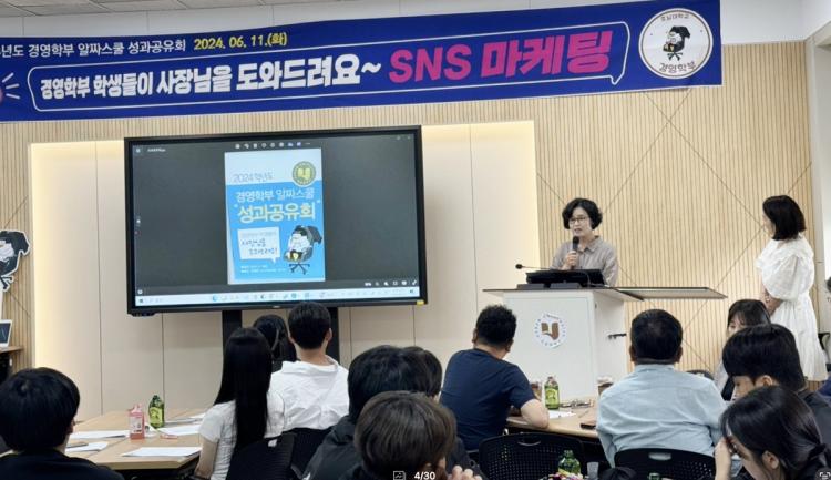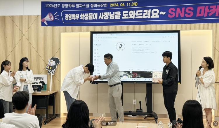 Çà»ç¿¡ Âü¼®ÇÑ ÀÌ¿µºó »çȸ°æ¿µ´ëÇÐÀåÀº ¡°1Çгâ ÇлýµéÀÌ SNS ¸¶ÄÉÆÃ ÇнÀ »Ó¸¸ ¾Æ´Ï¶ó ½ÇÁ¦ ¿µ»ó Á¦ÀÛÀ» ÅëÇØ ºñÁî´Ï½º »óȲÀ» ¸ö¼Ò üÇèÇϰí âÀǼº°ú ÆÀ¿öÅ©¸¦ ¹ßÈÖÇÑ ½Ç¹«Áß½ÉÀÇ ±³À°ÀÌ ¸¶ÄÉÆÃ Àü¹®ÀÎÀç·Î ¼ºÀåÇϴµ¥ Å« µµ¿òÀÌ µÉ °Í¡±À̶ó°í °Ý·ÁÇß´Ù.