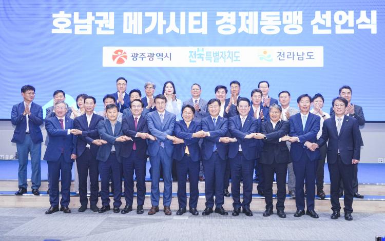 3°³ ½Ã¡¤µµÁö»ç´Â Àü±¹ÀûÀÎ Ãʱ¤¿ª ¸Þ°¡½ÃƼ °ø·ÐÈ È帧 ¼Ó¿¡¼ Áö¿ª¼Ò¸êÀÇ À§±â ´ëÀÀ ¹× Áö¿ª °æÁ¦¹ßÀüÀ» µµ¸ðÇϱâ À§ÇØ ¡®È£³²±Ç ¸Þ°¡½ÃƼ °æÁ¦µ¿¸Í¡¯À» °á¼ºÇϴµ¥ ¶æÀ» ¸ðÀ¸°í °øµ¿ÀÇ ¸ñÇ¥¸¦ ÇâÇÑ Ã¹ Çຸ¸¦ ½ÃÀÛÇß´Ù.