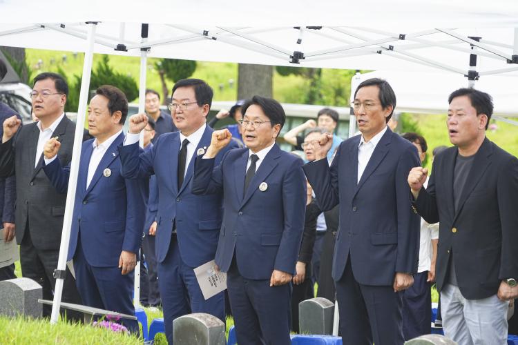 | °±âÁ¤ ±¤ÁÖ±¤¿ª½ÃÀåÀÌ 5ÀÏ ¿ÀÈÄ ºÏ±¸ ¸Á¿ùµ¿ ¹ÎÁ·¹ÎÁÖ¿»ç¹¦¿ª¿¡¼ ÁøÇàµÈ 'Á¦37ÁÖ±â ÀÌÇÑ¿ ¿»ç Ã߸ð½Ä'¿¡ Âü¼®ÇØ ÀÓÀ» À§ÇÑ ÇàÁø°îÀ» Á¦Ã¢Çϰí ÀÖ´Ù |