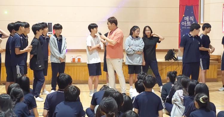 [ÅåÅå´º½º]È£³²´ë¶ö¶ö¶ó½ºÄð(´ëÇ¥ Á¤À±Èñ)Àº 7¿ù 15ÀÏ ¿ÀÈÄ ³ªÁÖ ³²ÆòÁßÇб³(±³Àå ½ÅÁ¾¼÷)¿¡¼ ÀçÇлý 250¿©¸íÀ» ´ë»óÀ¸·Î ¡®Ã£¾Æ°¡´Â ¾ÆÆ®½ºÄð °ø¿¬¡¯À» ½Ç½ÃÇß´Ù.
