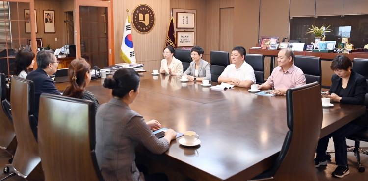 ½Éõ´ëÇб³ ¿ÕÀ§ ¼öÇаúÇдëÇÐ ¼±â ¹æ¹®´Ü ÀÏÇàÀº º»±³ ¹Ì·¡ÀÚµ¿Â÷°øÇкÎÀÇ »ó»ó°øÀÛ¼Ò, ¹®ÈüÀ°°ü, ±â¼÷»ç, µµ¼°ü µî Ä·ÆÛ½º Åõ¾î¸¦ °¡Á³À¸¸ç, ¾ç±³°¡ ÁøÇàÇÒ ±³·ùÇÁ·Î±×·¥ ¹× ±³À°°úÁ¤ À§Å¹¾ç¼ºÇÁ·Î±×·¥¿¡ ´ëÇØ »ó¼¼ÇÑ ³íÀÇ¿Í ÇÔ²² ÇâÈÄ ¾ç±³ÀÇ Æø³Ð°í Ȱ¹ßÇÑ ±³·ù ÁøÇàÀ» ¾à¼ÓÇß´Ù.
