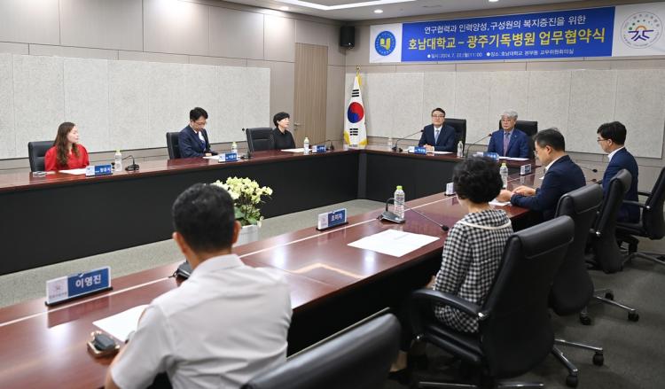 [ÅåÅå´º½º]È£³²´ëÇб³(ÃÑÀå ¹Ú»óö)´Â 7¿ù 22ÀÏ º»ºÎµ¿ 3Ãþ ±³¹«À§¿øÈ¸Àǽǿ¡¼ ±¤Áֱ⵶º´¿ø(º´¿øÀå À̽¿í)°ú ¾÷¹«Çù¾àÀ» ü°á, ¾ç ±â°üÀÌ °øÅë °ü½ÉºÐ¾ß ¿¬±¸Çù·Â°ú Àη¾缺, ±¸¼º¿øÀÇ º¹ÁöÁõÁøÀ» À§ÇØ »óÈ£Çù·ÂÇϱâ·Î Çß´Ù.