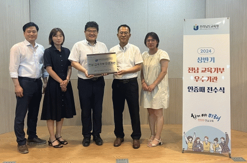 [ÅåÅå´º½º]Àü¶ó³²µµ±³À°Ã»ÀÌ ¿Ã »ó¹Ý±â Àü³² ±³À°±âºÎ ÀÎÁõ±â°üÀ¸·Î ³ì»ö¿¡³ÊÁö¿¬±¸¿ø, ±Â³×À̹ö½º ÀÎÅͳ»¼Å³¯ È£³²ÃæÃ»±Ç¿ªº»ºÎ, Àü¶ó³²µµÁ¤º¸¹®È»ê¾÷ÁøÈï¿ø, âÆòÇâ±³ µî 4°÷À» ¼±Á¤Çß´Ù.