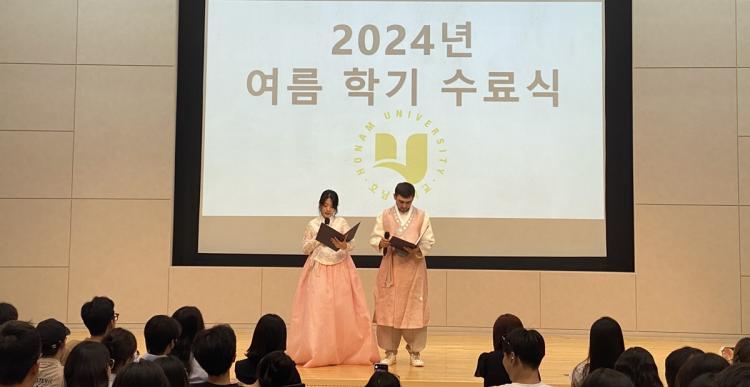 [ÅåÅå´º½º]È£³²´ëÇб³ Çѱ¹¾î±³À°¿ø(¿øÀå À±¿µ)Àº 8¿ù 7ÀÏ µµ¼°ü 1Ãþ ±¹Á¦È¸Àǽǿ¡¼ ±³À°¿ø Á¤±Ô°úÁ¤À» ¼ö·áÇÑ ¿Ü±¹ÀÎ ÇлýµéÀ» ´ë»óÀ¸·Î ¡®2024Çг⵵ ¿©¸§Çб⠼ö·á½Ä¡¯À» ÁøÇàÇß´Ù.
