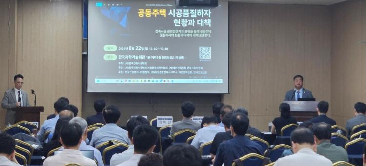 ¹ßÇ¥ ¼¼¼Ç¿¡¼´Â Çѱ¹°ÇÃà½Ã°øÇÐȸ ºÎȸÀåÀÎ ±è±Ô¿ë Ãæ³²´ëÇб³ °ÇÃà°øÇаú ±³¼ö°¡ 'Æ÷·³ÀÇ °æÀ§', ±¹Åä¾ÈÀü°ü¸®¿ø ÇÏÀڻ繫±¹ÀÇ Çѽº¹ ÆÀÀåÀÌ ¡®°øµ¿ÁÖÅà ÇÏÀÚ ºÐÀï ÇØ°á¡¯, LH ½º¸¶Æ®°Ç¼³º»ºÎ ÁÖÅÃǰÁúóÀÇ Á¤È¯¿µ óÀåÀÌ ¡®°øµ¿ÁÖÅà ½Ã°øÇ°Áú Çâ»ó ´ëÃ¥¡¯, ·Ôµ¥°Ç¼³ ±â¼ú¿¬±¸¿øÀÇ ±è±¤±â ¼ö¼®¿¬±¸¿øÀÌ ¡®°øµ¿ÁÖÅà ºê·£µå Àü·«°ú ǰÁú°ü¸®¡¯¸¦ ÁÖÁ¦·Î ¹ßÇ¥¸¦ ÁøÇàÇß´Ù. ¹ßÇ¥ ÈÄ¿¡´Â ±è¹ÌÁø °ÇÃà»ç, ¹Îµ¿È¯ º¯È£»ç, ±èÁ¤¿í ¼ö¼® µî Àü¹®°¡µéÀÌ ÁöÁ¤Åä·ÐÀÚ·Î Âü¿©ÇÏ¿© ½Éµµ ÀÖ´Â ³íÀǸ¦ À̾´Ù.