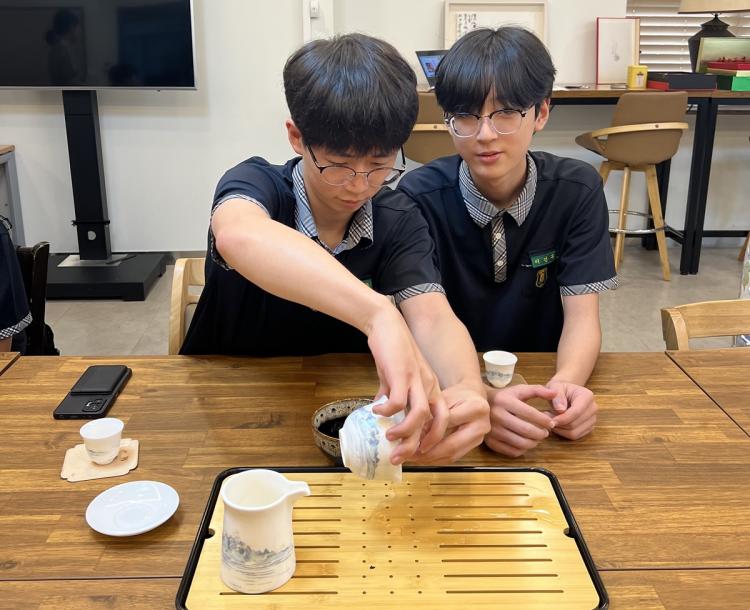 ¿ø¾î¹Î °»çµéÀº ´Ùµµ¿Í Áß±¹ ¸ÅµìÀÇ ¿ª»çÀû ¹è°æ°ú ¹®ÈÀû Àǹ̸¦ ´ãÀº PPT¸¦ ÅëÇØ ÇлýµéÀÇ Èï¹Ì¸¦ ²ø¸ç ÀÚ¿¬½º·´°Ô ¼ö¾÷À» ½ÃÀÛÇß´Ù. ´Ùµµ üÇè¿¡¼´Â Â÷¸¦ ÁغñÇÏ°í ¸¶½Ã´Â °úÁ¤À» ÅëÇØ Áß±¹ÀÇ ¿À·£ ´Ùµµ ¹®ÈÀÇ Á¤¼ö¸¦ °æÇèÇÒ ¼ö ÀÖ¾úÀ¸¸ç, ÇлýµéÀº Á÷Á¢ Â÷¸¦ ¿ì·Á³»´Â °úÁ¤°ú À½¹ÌÇÏ´Â ¹ýÀ» ¹è¿ì¸ç Áß±¹ ÀüÅë ´ÙµµÀÇ ±íÀ̸¦ ´À³¥ ¼ö ÀÖ¾ú´Ù.