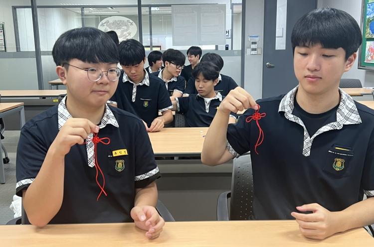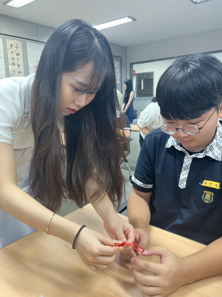 À̾îÁø Áß±¹ ¸Åµì üÇè ½Ã°£¿¡´Â ´Ù¾çÇÑ »ö»óÀÇ ½ÇÀ» »ç¿ëÇÏ¿© ÀüÅë ¸ÅµìÀ» ¸¸µå´Â ¹æ¹ýÀ» ¹è¿ü´Ù. ¿ø¾î¹Î °»çµéÀº ¸ÅµìÀÌ ´Ü¼øÇÑ Àå½ÄǰÀÌ ¾Æ´Ï¶ó, ¿À·£ ¼¼¿ù µ¿¾È Çà¿î°ú Àå¼ö¸¦ ±â¿øÇÏ´Â Àǹ̸¦ ´ã°í ÀÖ´Ù´Â Á¡À» °Á¶Çß´Ù. ÇлýµéÀº °¢ÀÚ ÀڽŸ¸ÀÇ ¸Åµì ÀÛǰÀ» ¸¸µé¸ç âÀǷ°ú ÁýÁß·ÂÀ» ¹ßÈÖÇß´Ù.