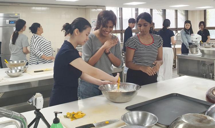 ¿¬¼ö´ÜÀº ù° ³¯ ¿ÀÀü¿¡ Ä·ÆÛ½º Åõ¾î¸¦ ¸¶Ä¡°í ¿ÀÈÄ¿¡ µðÀúÆ® ¸¸µé±â ¼ö¾÷¿¡ Âü¿©ÇÏ¿© ¡®¿¡³ÊÁö¹Ù¡¯¿Í ¡®Çѱ¹½Ä È£¹ÚÆÄÀÌ¡¯¸¦ Á÷Á¢ ¸¸µé¾îº¸´Â üÇèÀ» Çß´Ù. ¿Ü½ÄÁ¶¸®Çаú ÃÖ»óÈ£ ±³¼öÀÇ Áöµµ ¾Æ·¡ ÇлýµéÀº ¿ä¸® ½Ã¿¬À» º» ÈÄ Á÷Á¢ ½Ç½ÀÇØº¸¸ç ½Ã½ÄÇÏ´Â ½Ã°£À» °¡Á³´Ù.