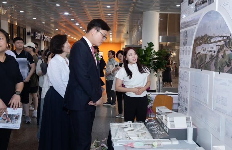 ±è ÃÑÀåÀº ¡°°ÇÃà º»¿¬ÀÇ ¹®Á¦»Ó¸¸ ¾Æ´Ï¶ó, »çȸ¡¤°æÁ¦ÀûÀÎ À̽´³ª Àΰ£ÀÇ º»¿¬¿¡ ´ëÇÑ ÁÖÁ¦¸¦ °í¹ÎÇÏ°í ¶Ç °ÇÃàÀ» ÅëÇØ »çȸ¿¡ ´øÁö°íÀÚ ÇÏ´Â ¸Þ½ÃÁö°¡ ÂüÀ¸·Î ´Ù¾çÇÑ °Í °°´Ù¡±¸é¼ ¡°¸Å³â ¹ßÀüÀ» °ÅµìÇÏ´Â ±¤ÁÖ´ë °ÇÃàÇеµµéÀÇ ¹«ÇÑÇÑ ¼ºÀå°ú Àå¹Ôºû ¹Ì·¡¸¦ ÀÀ¿øÇÑ´Ù¡±¶ó°í ¸»Çß´Ù.