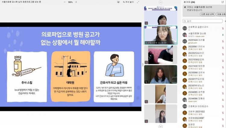 À̳¯ Çà»ç¿¡¼´Â °£È£Çаú µ¿¹® ±èÀºÇâ(2020³â Á¹¾÷, ¼¼ºê¶õ½ºº´¿ø ±Ù¹«)°£È£»ç, ¹Ú³ª¿¬(2021³â Á¹¾÷, ¼¿ï¾Æ»êº´¿ø ±Ù¹«)°£È£»ç µî 10°³ º´¿ø¿¡¼ ±Ù¹«Çϰí ÀÖ´Â Á¹¾÷»ýµéÀÌ ¸àÅä·Î Âü¿©, ÀڽŵéÀÌ ÀçÁ÷Çϰí ÀÖ´Â º´¿ø ¼Ò°³¿Í ÇÔ²² Ãë¾÷ ³ëÇϿ츦 Àü¼öÇß´Ù.