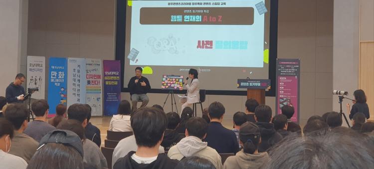 ¸¸È¾Ö´Ï¸ÞÀ̼ÇÇаú ±è¼¿µ ±³¼ö´Â ¡°ÇлýµéÀÌ Á÷Á¢ ÇöÁ÷ ÀÛ°¡ÀÇ À̾߱⸦ µè°í ½Ç¹«¿¡¼ Ȱ¿ëµÇ´Â ±â¼ú°ú À¥Å÷ »ê¾÷ÀÇ ÇöȲÀ» ÀÌÇØÇÏ´Â °ÍÀº Áß¿äÇÑ °úÁ¤ÀÌ´Ù.¡±¸ç ¡°ÇлýµéÀÌ °ÀǸ¦ µè°í ³ µÚ, ÄÜÅÙÃ÷ ºÐ¾ß¿¡ ´ëÇÑ ¿Á¤ÀÌ ´õ¿í ³ô¾ÆÁ³´Ù´Â Çǵå¹éÀ» ¹ÞÀ¸¸é¼ ÇÁ·Î±×·¥ÀÇ Çʿ伺°ú È¿°ú¸¦ ´Ù½Ã±Ý ´À³¢°Ô µÇ¾ú´Ù.¡±¶ó°í ¹àÇû´Ù.