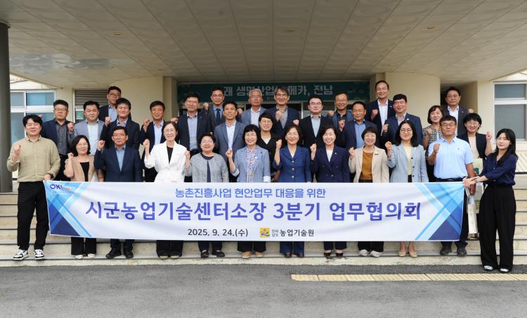 [ÅåÅå´º½º] Àü¶ó³²µµ³ó¾÷±â¼ú¿ø(¿øÀå ±èÇà¶õ)Àº Áö³ 24ÀÏ, µµ³» 21°³ ½Ã¡¤±º ³ó¾÷±â¼ú¼¾ÅͼÒÀåÀÌ Âü¼®ÇÑ °¡¿îµ¥ Çö¾È»ç¾÷À» °øÀ¯ÇÏ°í ¼ÒÅë °È¸¦ À§ÇÑ ¾÷¹«ÇùÀÇȸ¸¦ °³ÃÖÇß´Ù°í ¹àÇû´Ù.