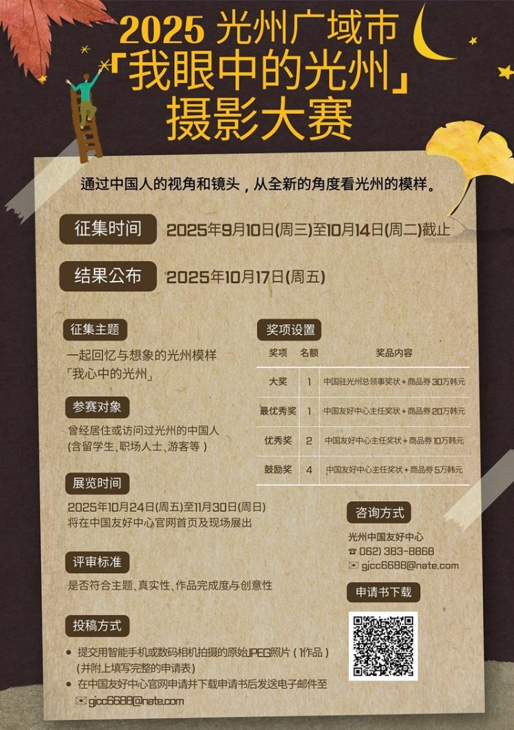 ±¤ÁÖ±¤¿ª½Ã(½ÃÀå °±âÁ¤)°¡ ÁÖÃÖÇÑ À̹ø °ø¸ðÀüÀº ±¤ÁÖ¿¡ °ÅÁÖÇÏ´Â Áß±¹ ±¹ÀûÀÚ(À¯Çлý, ´Ù¹®È°¡Á¤ ±¸¼º¿ø, ±Ù·ÎÀÚ µî)¸¦ ´ë»óÀ¸·Î ÇÏ¸ç ¡ã³»°¡ Ãß¾ïÇÏ´Â ±¤ÁÖ´Ù¿ò ¡ãƯ»ö ÀÖ´Â ±¤ÁÖÀÇ ¸ð½À ¡ã±¤ÁÖ ÃàÁ¦ ÇöÀå ¡ã´ëÇÐ Ä·ÆÛ½ºÀÇ È°±âÂù »ýȰ µî ±¤ÁÖ¿Í °ü·ÃµÈ ´Ù¾çÇÑ ÁÖÁ¦·Î ÀÚÀ¯·Ó°Ô »çÁøÀ» ÃâǰÇÒ ¼ö ÀÖ´Ù.