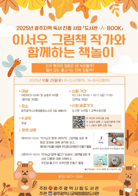 [ÅåÅå´º½º]±¤ÁÖ±¤¿ª½Ã±³À°Ã»Áß¾Óµµ¼°üÀº ¿À´Â 10¿ù 25ÀÏ º»°ü 3Ãþ ¹è¿òÅÍ3¿¡¼ ¡®À̼¿ì ±×¸²Ã¥ ÀÛ°¡¿Í ÇÔ²²Çϴ å³îÀÌ¡¯ ÇÁ·Î±×·¥À» ¿î¿µÇÑ´Ù.