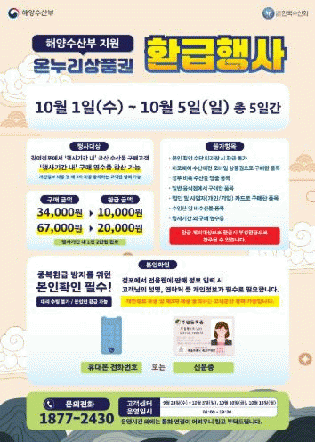 ³óÃà»ê¹°°ú ¼ö»ê¹° ȯ±ÞÇà»ç¸¦ µ¿½Ã ÁøÇàÇÏ´Â ½ÃÀå(³²±¤ÁÖ¡¤³²±¤ÁÖÇØ¶ß´Â½ÃÀ忬ÇÕ, ¸»¹Ù¿ì, ¹«µî, ¾çµ¿ÀüÅë½ÃÀ忬ÇÕ)¿¡¼´Â ÃÖ´ë 4¸¸¿ø±îÁö ȯ±Þ¹ÞÀ» ¼ö ÀÖ´Ù.