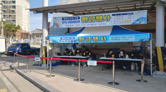 [ÅåÅå´º½º]Àü³² ¹«¾È±ºÀº Ãß¼® ¸íÀýÀ» ¸ÂÀÌÇÏ¿© ±¹³»»ê ¼ö»ê¹°ÀÇ ¼Òºñ ÃËÁøÀ» À§ÇÏ¿© 10¿ù 4ÀÏ ¹«¾ÈÀüÅë½ÃÀå¿¡¼ ¿Â´©¸® »óǰ±Ç ȯ±ÞÇà»ç¸¦ ÁøÇàÇÑ´Ù.