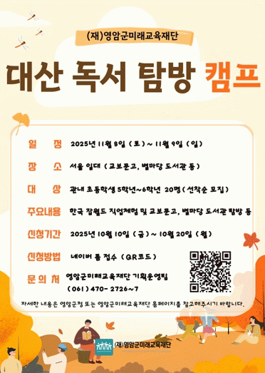 [ÅåÅå´º½º](Àç)¿µ¾Ï±º¹Ì·¡±³À°Àç´ÜÀÌ Áö¿ª µ¶¼ ¹®È ÁõÁø°ú ¾Æµ¿ Áø·Î Ž»ö ±âȸ Á¦°øÀ» ÃëÁö·Î ÇÑ ¡®2025³â ´ë»ê µ¶¼ ޹æ Ä·ÇÁ¡¯ Âü°¡ÀÚ¸¦ 10ÀϺÎÅÍ 20ÀϱîÁö ¸ðÁýÇÑ´Ù.