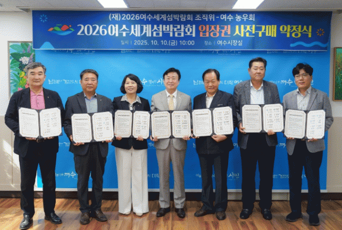 [ÅåÅå´º½º](Àç)2026¿©¼ö¼¼°è¼¶¹Ú¶÷ȸÁ¶Á÷À§¿øÈ¸´Â Áö³ 10ÀÏ ¿©¼ö½Ãû ½ÃÀå½Ç¿¡¼ ¿©¼ö ³ó¿ìȸ¿Í 2026¿©¼ö¼¼°è¼¶¹Ú¶÷ȸ ÀÔÀå±Ç 5,100¸¸ ¿ø ±Ô¸ðÀÇ »çÀü ±¸¸Å ¾àÁ¤À» ü°áÇß´Ù°í ¹àÇû´Ù.