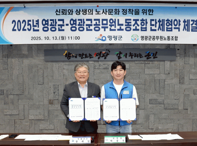 [ÅåÅå´º½º]¿µ±¤±ºÀº Áö³ 10¿ù 13ÀÏ ±ºÃ» 2Ãþ ¼ÒȸÀǽǿ¡¼ ¿µ±¤±º°ø¹«¿ø³ëµ¿Á¶ÇÕ°ú ¡°2025³â ´ÜüÇù¾à½Ä¡±À» ü°áÇß´Ù.
