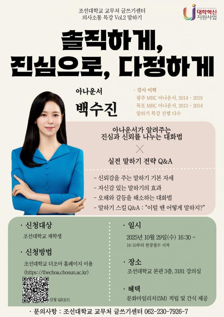 [ÅåÅå´º½º] Á¶¼±´ëÇб³(ÃÑÀå ±èÃἺ) ±³¹«Ã³ »êÇÏ ±Û¾²±â¼¾ÅͰ¡ 10¿ù 29ÀÏ ¿ÀÈÄ 4½Ã 30ºÐ, º»°ü 3181 °Àǽǿ¡¼ ¹é¼öÁø ¾Æ³ª¿î¼¸¦ ÃÊÃ»ÇØ <¼ÖÁ÷ÇϰÔ, Áø½ÉÀ¸·Î, ´ÙÁ¤ÇϰÔ> Ư°À» °³ÃÖÇÑ´Ù.