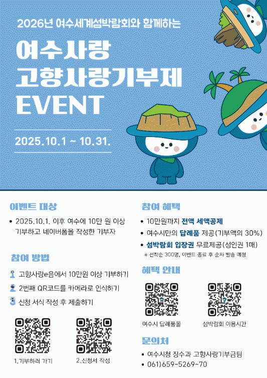 Âü¿© ¹æ¹ýÀº °íÇâ»ç¶ûeÀ½ ´©¸®Áý¿¡¼ 10¸¸ ¿ø ÀÌ»ó ±âºÎ ÈÄ Æ÷½ºÅÍ ÇÏ´Ü QRÄڵ带 ÅëÇØ ½Åû¼¸¦ ÀÛ¼º¡¤Á¦ÃâÇÏ¸é µÈ´Ù.