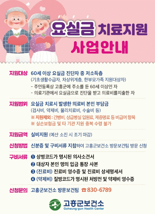 [ÅåÅå´º½º]°íÈﱺÀº °ü³» 60¼¼ ÀÌ»ó Àú¼ÒµæÃþ ¾î¸£½ÅÀ» ´ë»óÀ¸·Î ¡®¿ä½Ç±Ý Ä¡·á Áö¿ø»ç¾÷¡¯À» ½ÃÇàÇÑ´Ù°í ¹àÇû´Ù.