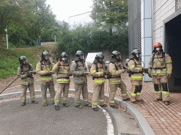 ±³À°°ú ÀÛ¾÷Àå ¾ÈÀü°ü¸®¸¦ À§ÇÑ ¼Òȱâ ÀÛµ¿¹ý°ú °ø±âÈ£Èí±â Âø¿ë ½Ç½À, ¼Ò¹æ¿ë Ư¼ö¹æÈº¹°ú °ø±âÈ£Èí±â¸¦ Âø¿ëÇϰí À¯·ù ÈÀç ÈÆ·ÃÀå¿¡ ÁøÀÔÇÏ¿© ÈÀ縦 Áø¾ÐÇÏ´Â ÈÆ·Ã±îÁö ´Ü°èº°·Î ½Ç½ÃÇß´Ù.
