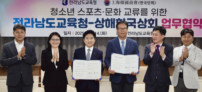 [ÅåÅå´º½º]Àü¶ó³²µµ±³À°Ã»Àº 14ÀÏ »óÇØÇѱ¹»óȸ¿Í ¡®Ã»¼Ò³â ½ºÆ÷Ã÷¡¤¹®È ±³·ù¸¦ À§ÇÑ ¾÷¹«Çù¾à(MOU)¡¯À» ü°áÇß´Ù.