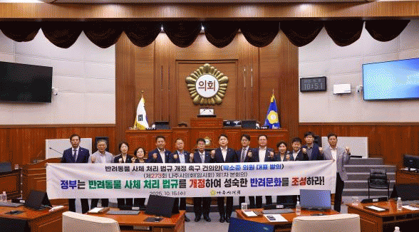[ÅåÅå´º½º]³ªÁÖ½ÃÀÇȸ´Â 15ÀÏ Á¦273ȸ ÀÓ½Ãȸ Á¦1Â÷ º»È¸ÀǸ¦ ¿°í ¡®¹Ý·Áµ¿¹° »çü ó¸® ¹ý±Ô °³Á¤ Ã˱¸ °ÇÀǾȡ¯À» äÅÃÇß´Ù.