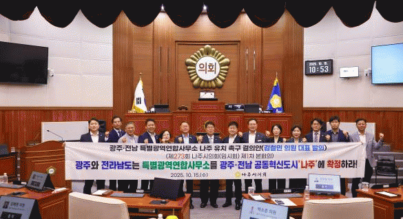 [ÅåÅå´º½º]³ªÁÖ½ÃÀÇȸ´Â 15ÀÏ Á¦273ȸ ÀÓ½Ãȸ Á¦1Â÷ º»È¸ÀǸ¦ ¿°í ¡®±¤ÁÖ¡¤Àü³² Ưº°±¤¿ª¿¬Çջ繫¼Ò ³ªÁÖ À¯Ä¡ Ã˱¸ °áÀǾȡ¯À» äÅÃÇß´Ù.