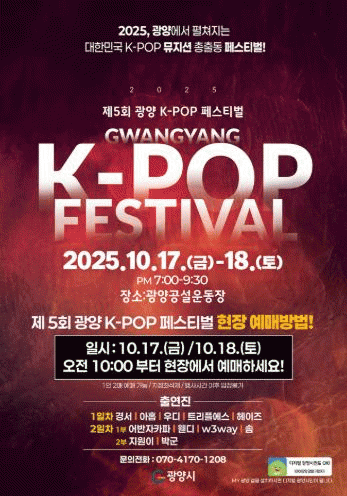 [ÅåÅå´º½º]±¤¾ç½Ã´Â 17ÀÏ ¿ÀÈÄ 7½Ã ±¤¾ç°ø¼³¿îµ¿Àå ÀÏ¿ø¿¡¼ ±¹³»¿Ü K-POP ÆÒµéÀÇ ¿Á¤À» Çϳª·Î ¸ðÀ» ¡®Á¦5ȸ ±¤¾ç K-POP Æä½ºÆ¼¹ú¡¯ÀÇ È·ÁÇÑ ¸·ÀÌ ¿À¸¥´Ù°í ¹àÇû´Ù.